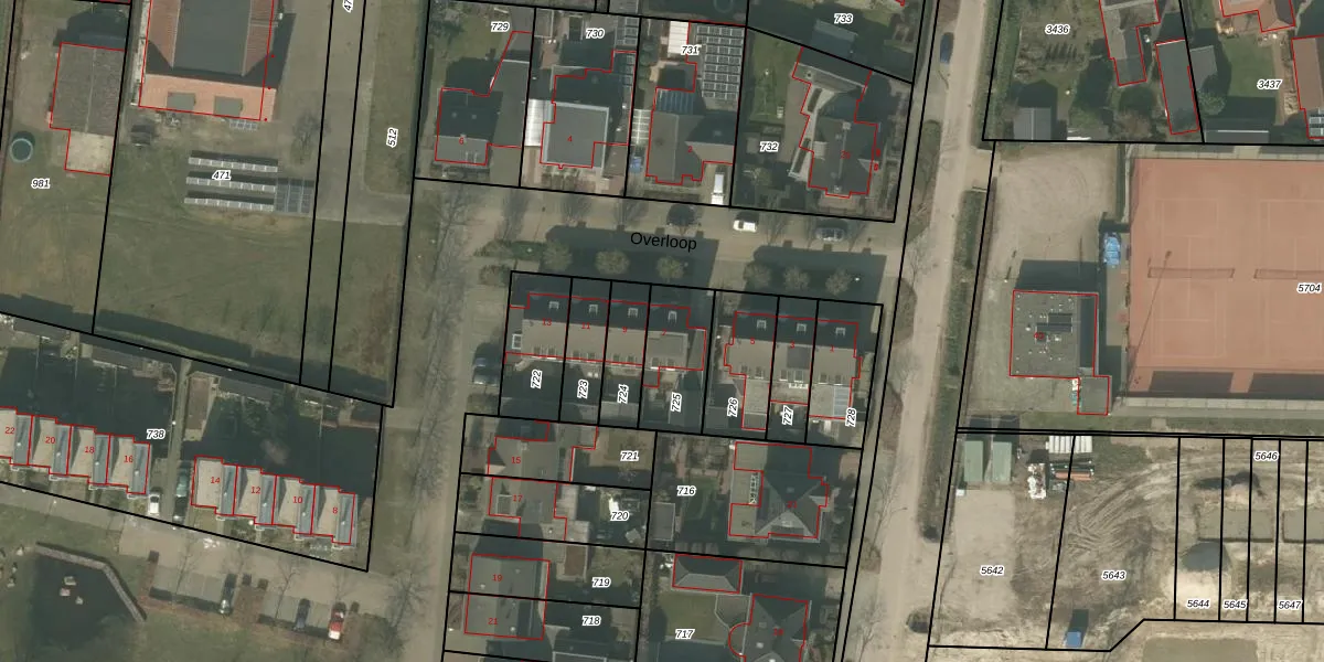 Gebruik de zoekbalk of klik op een perceel voor informatie over de adressen binnen dit perceel.