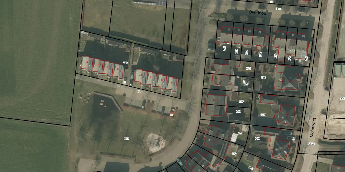 Het perceel waarop Overloop 8 staat heeft een oppervlakte van 1553 m². Dit is een zeer groot perceel. De perceeloppervlakte wordt geregistreerd door het Kadaster. Gedetailleerde informatie over de maten van dit perceel kunt u vinden in het rapport Kadastrale kaart met maatvoering van Overloop 8.