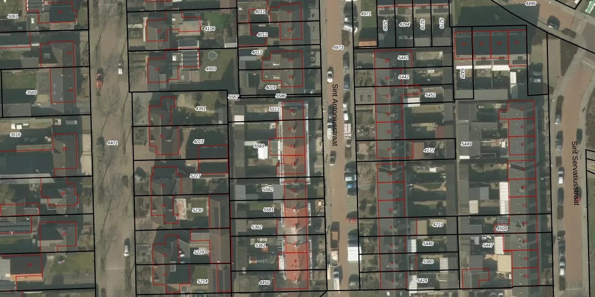 Sint Antoniusstraat 15 is gelegen op kadastraal perceel DNE00G5583. Deze kadastrale aanduiding is uniek en wordt gebruikt door het Kadaster om eigendomsrechten en andere zakelijke rechten vast te leggen. Het perceel maakt onderdeel uit van de kadastrale gemeente Deurne.