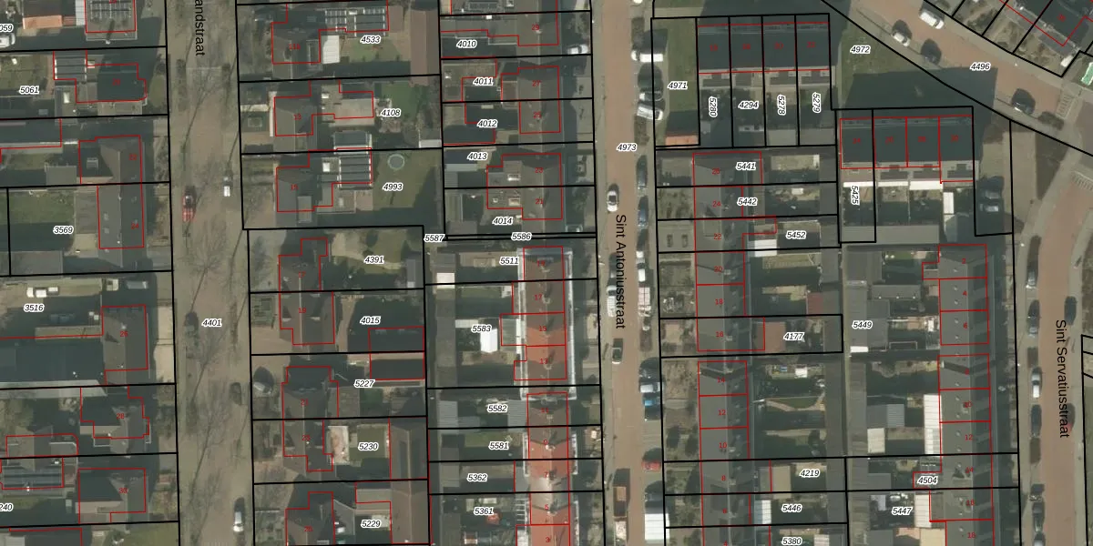 Sint Antoniusstraat 19 is gelegen op kadastraal perceel DNE00G5511. Deze kadastrale aanduiding is uniek en wordt gebruikt door het Kadaster om eigendomsrechten en andere zakelijke rechten vast te leggen. Het perceel maakt onderdeel uit van de kadastrale gemeente Deurne.