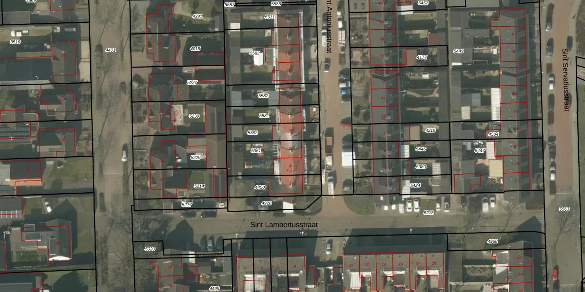 Het perceel waarop Sint Antoniusstraat 5 staat heeft een oppervlakte van 380 m². Dit is een groot perceel. De perceeloppervlakte wordt geregistreerd door het Kadaster. Gedetailleerde informatie over de maten van dit perceel kunt u vinden in het rapport Kadastrale kaart met maatvoering van Sint Antoniusstraat 5.