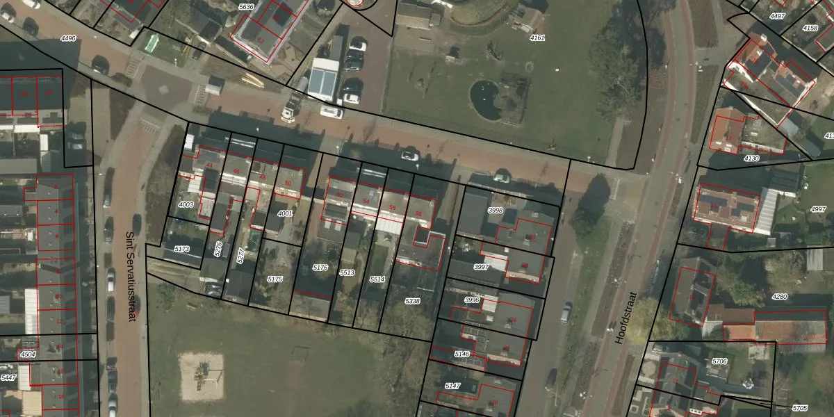 Het perceel waarop Sint Hubertusstraat 58 staat heeft een oppervlakte van 495 m². Dit is een groot perceel. De perceeloppervlakte wordt geregistreerd door het Kadaster. Gedetailleerde informatie over de maten van dit perceel kunt u vinden in het rapport Kadastrale kaart met maatvoering van Sint Hubertusstraat 58.