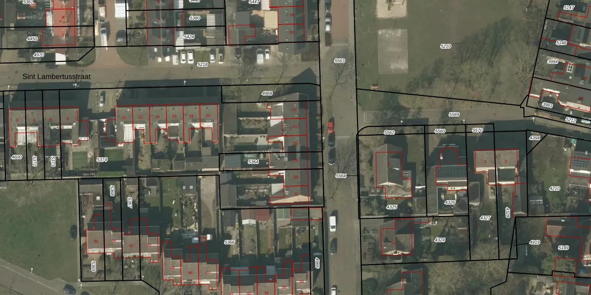 Het perceel waarop Sint Servatiusstraat 26 staat heeft een oppervlakte van 2690 m². Dit is een zeer groot perceel. De perceeloppervlakte wordt geregistreerd door het Kadaster. Gedetailleerde informatie over de maten van dit perceel kunt u vinden in het rapport Kadastrale kaart met maatvoering van Sint Servatiusstraat 26.