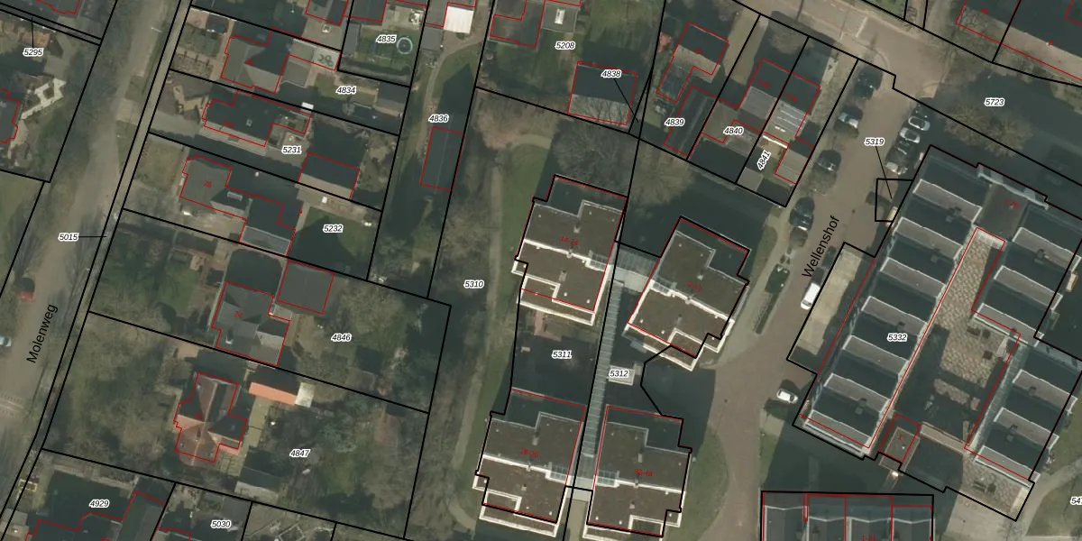 Het perceel waarop Wellenshof 22 staat heeft een oppervlakte van 995 m². Dit is een groot perceel. De perceeloppervlakte wordt geregistreerd door het Kadaster. Gedetailleerde informatie over de maten van dit perceel kunt u vinden in het rapport Kadastrale kaart met maatvoering van Wellenshof 22.