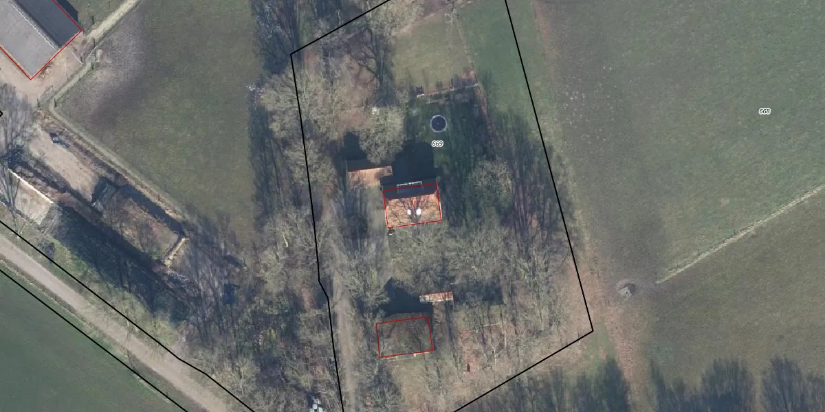Het adres is gelegen op perceel 669 in de sectie R en de kadastrale gemeente Lichtenvoorde. De kadastrale aanduiding is aldus LTV00-R-669. De gemiddelde perceeloppervlakte in de kadastrale gemeente Lichtenvoorde is 5632,86 m². Dit perceel is met zijn 5900 m² dus groter dan gemiddeld. Het kleinste perceel in de kadastrale gemeente is 0 m² groot. De grootste perceeloppervlakte is 37,4 ha. Dit is het enige adres dat aanwezig is op het perceel. De laatste wijziging in het de Basisregistratie Kadaster (BRK) was op 25-09-2015.