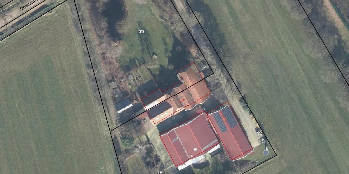 Droebertweg 5 is gelegen op kadastraal perceel LTV00P646. Deze kadastrale aanduiding is uniek en wordt gebruikt door het Kadaster om eigendomsrechten en andere zakelijke rechten vast te leggen. Het perceel maakt onderdeel uit van de kadastrale gemeente Lichtenvoorde.