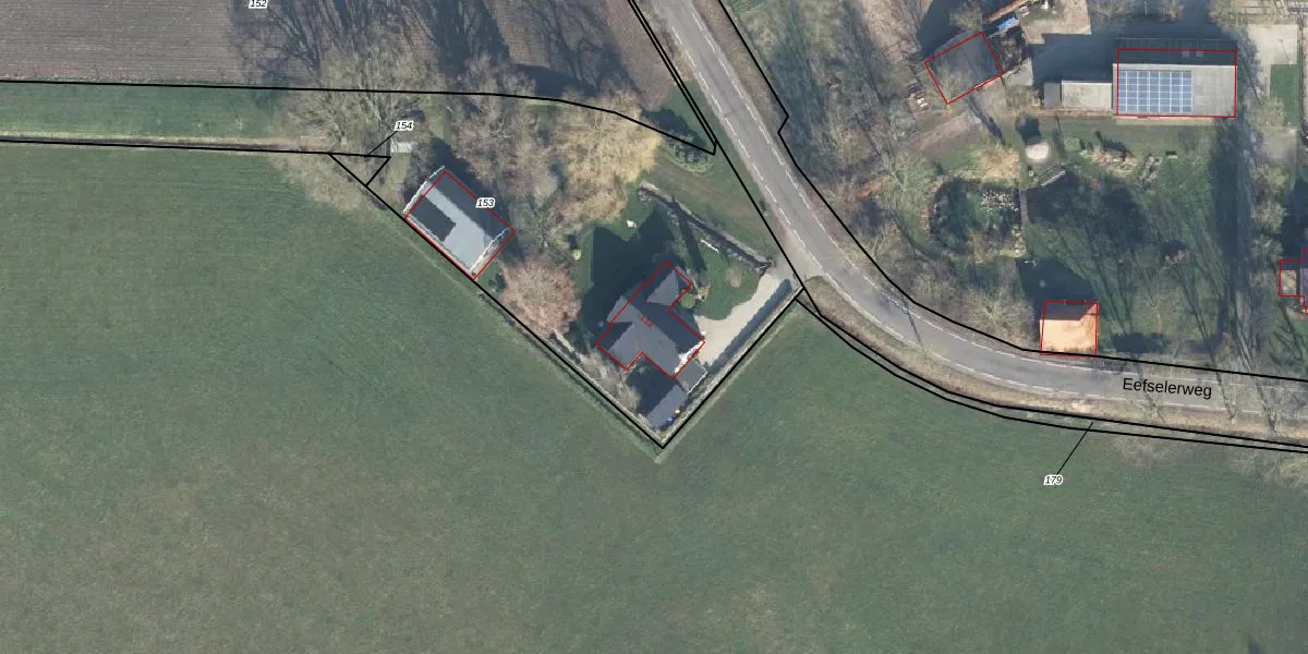 Eefselerweg 11-a is gelegen op kadastraal perceel LTV00P153. Deze kadastrale aanduiding is uniek en wordt gebruikt door het Kadaster om eigendomsrechten en andere zakelijke rechten vast te leggen. Het perceel maakt onderdeel uit van de kadastrale gemeente Lichtenvoorde.