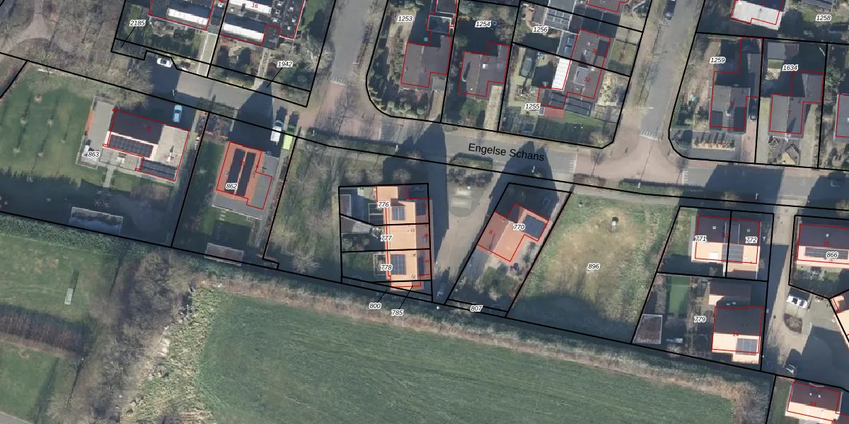 Het perceel waarop Engelse Schans 2 staat heeft een oppervlakte van 185 m². Dit is een middelgroot perceel. De perceeloppervlakte wordt geregistreerd door het Kadaster. Gedetailleerde informatie over de maten van dit perceel kunt u vinden in het rapport Kadastrale kaart met maatvoering van Engelse Schans 2.