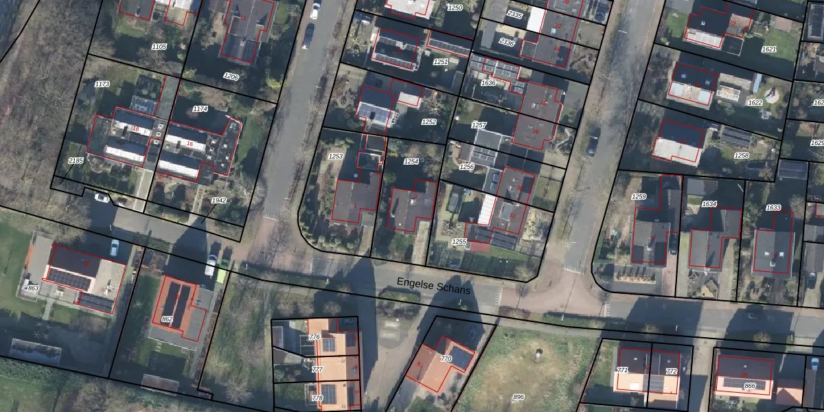 Het perceel waarop Engelse Schans 3 staat heeft een oppervlakte van 411 m². Dit is een groot perceel. De perceeloppervlakte wordt geregistreerd door het Kadaster. Gedetailleerde informatie over de maten van dit perceel kunt u vinden in het rapport Kadastrale kaart met maatvoering van Engelse Schans 3.