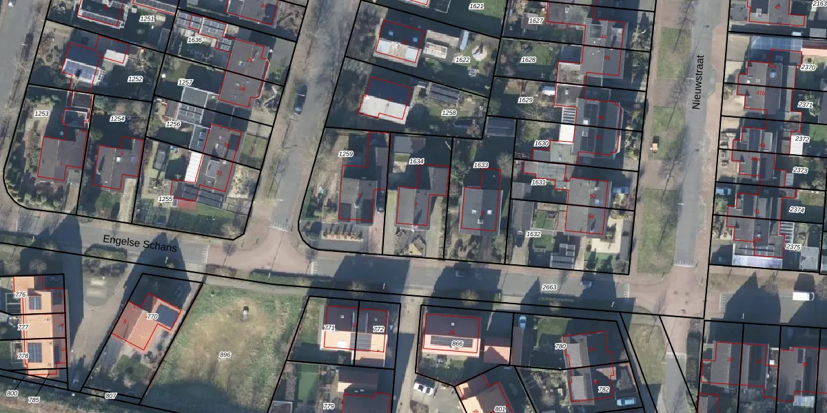 Het perceel waarop Engelse Schans 7 staat heeft een oppervlakte van 450 m². Dit is een groot perceel. De perceeloppervlakte wordt geregistreerd door het Kadaster. Gedetailleerde informatie over de maten van dit perceel kunt u vinden in het rapport Kadastrale kaart met maatvoering van Engelse Schans 7.