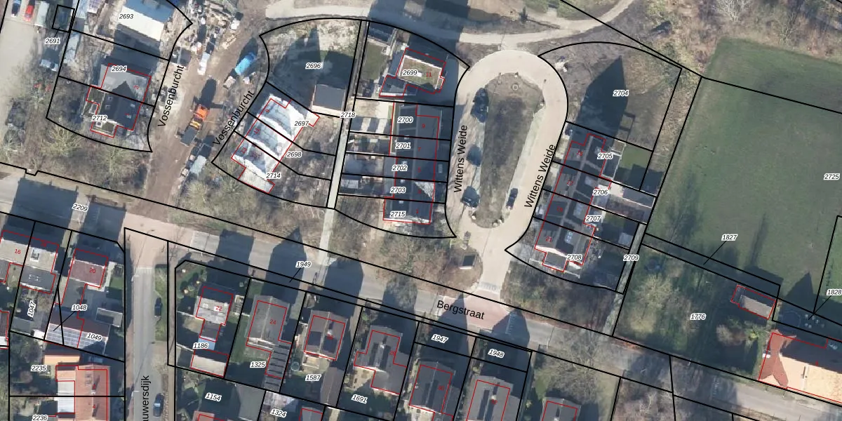 Wittens Weide 1 is gelegen op kadastraal perceel LTV00H2715. Deze kadastrale aanduiding is uniek en wordt gebruikt door het Kadaster om eigendomsrechten en andere zakelijke rechten vast te leggen. Het perceel maakt onderdeel uit van de kadastrale gemeente Lichtenvoorde.