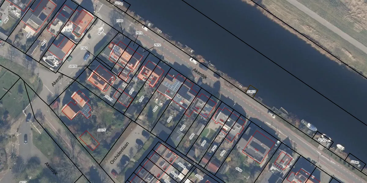 Het perceel waarop Akerdijk 127 staat heeft een oppervlakte van 340 m². Dit is een groot perceel. De perceeloppervlakte wordt geregistreerd door het Kadaster. Gedetailleerde informatie over de maten van dit perceel kunt u vinden in het rapport Kadastrale kaart met maatvoering van Akerdijk 127.