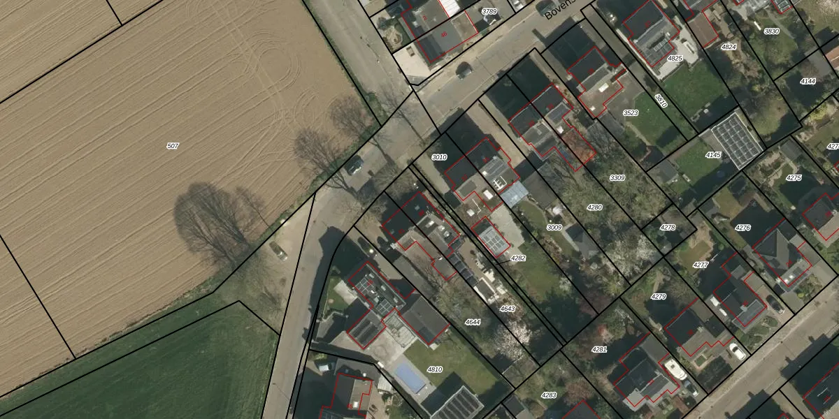 Het perceel waarop Bovenstraat 39 staat heeft een oppervlakte van 425 m². Dit is een groot perceel. De perceeloppervlakte wordt geregistreerd door het Kadaster. Gedetailleerde informatie over de maten van dit perceel kunt u vinden in het rapport Kadastrale kaart met maatvoering van Bovenstraat 39.