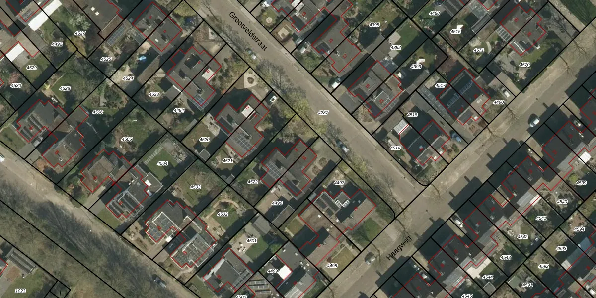 Het perceel waarop Grootveldstraat 16 staat heeft een oppervlakte van 360 m². Dit is een groot perceel. De perceeloppervlakte wordt geregistreerd door het Kadaster. Gedetailleerde informatie over de maten van dit perceel kunt u vinden in het rapport Kadastrale kaart met maatvoering van Grootveldstraat 16.