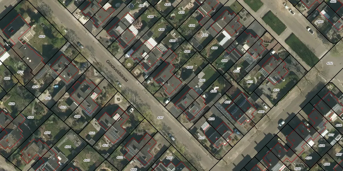 Het perceel waarop Grootveldstraat 17 staat heeft een oppervlakte van 354 m². Dit is een groot perceel. De perceeloppervlakte wordt geregistreerd door het Kadaster. Gedetailleerde informatie over de maten van dit perceel kunt u vinden in het rapport Kadastrale kaart met maatvoering van Grootveldstraat 17.