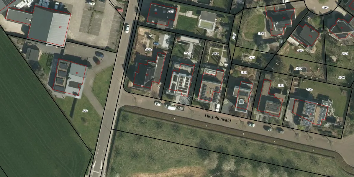 Het perceel waarop Hinschenveld 1 staat heeft een oppervlakte van 659 m². Dit is een groot perceel. De perceeloppervlakte wordt geregistreerd door het Kadaster. Gedetailleerde informatie over de maten van dit perceel kunt u vinden in het rapport Kadastrale kaart met maatvoering van Hinschenveld 1.