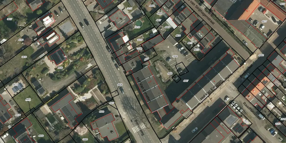 Het perceel waarop Hof Van Eynatten 11 staat heeft een oppervlakte van 3010 m². Dit is een zeer groot perceel. De perceeloppervlakte wordt geregistreerd door het Kadaster. Gedetailleerde informatie over de maten van dit perceel kunt u vinden in het rapport Kadastrale kaart met maatvoering van Hof Van Eynatten 11.