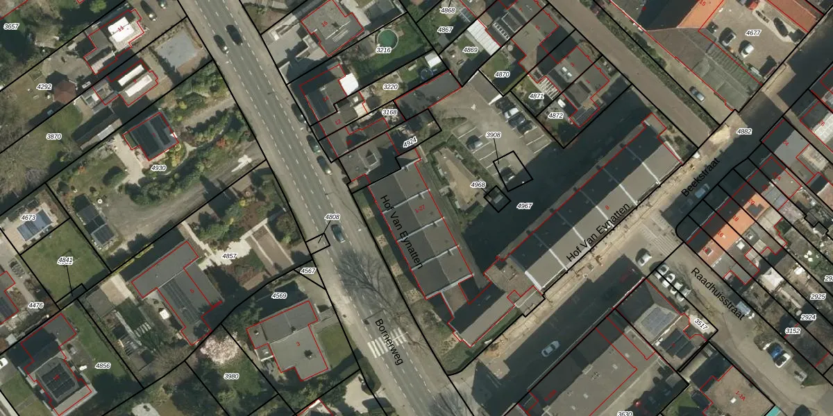 Het perceel waarop Hof Van Eynatten 12 staat heeft een oppervlakte van 3010 m². Dit is een zeer groot perceel. De perceeloppervlakte wordt geregistreerd door het Kadaster. Gedetailleerde informatie over de maten van dit perceel kunt u vinden in het rapport Kadastrale kaart met maatvoering van Hof Van Eynatten 12.