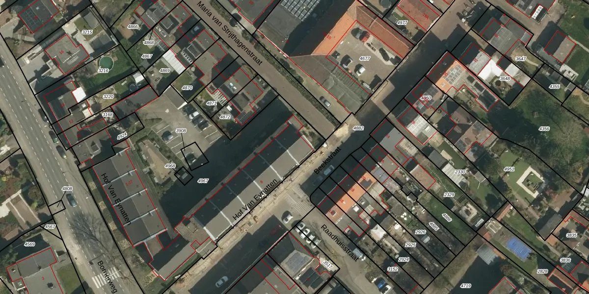 Het perceel waarop Hof Van Eynatten 21 staat heeft een oppervlakte van 3010 m². Dit is een zeer groot perceel. De perceeloppervlakte wordt geregistreerd door het Kadaster. Gedetailleerde informatie over de maten van dit perceel kunt u vinden in het rapport Kadastrale kaart met maatvoering van Hof Van Eynatten 21.