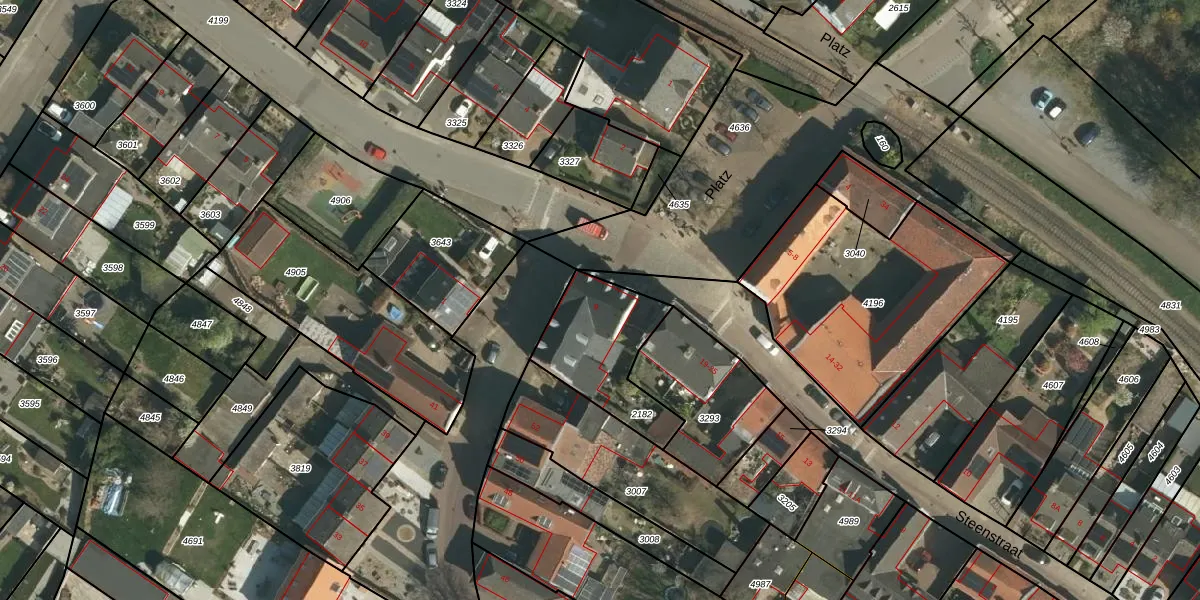 Het perceel waarop Platz 9 staat heeft een oppervlakte van 350 m². Dit is een groot perceel. De perceeloppervlakte wordt geregistreerd door het Kadaster. Gedetailleerde informatie over de maten van dit perceel kunt u vinden in het rapport Kadastrale kaart met maatvoering van Platz 9.