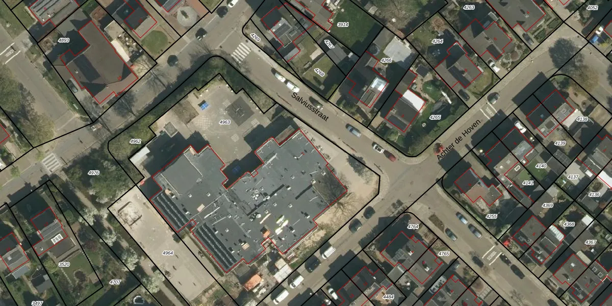 Het perceel waarop Salviusstraat 2 staat heeft een oppervlakte van 3475 m². Dit is een zeer groot perceel. De perceeloppervlakte wordt geregistreerd door het Kadaster. Gedetailleerde informatie over de maten van dit perceel kunt u vinden in het rapport Kadastrale kaart met maatvoering van Salviusstraat 2.