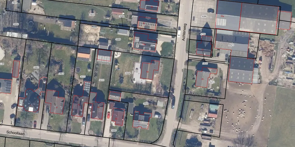Achterweg 54 is gelegen op kadastraal perceel LMN00A2658. Deze kadastrale aanduiding is uniek en wordt gebruikt door het Kadaster om eigendomsrechten en andere zakelijke rechten vast te leggen. Het perceel maakt onderdeel uit van de kadastrale gemeente Limmen.