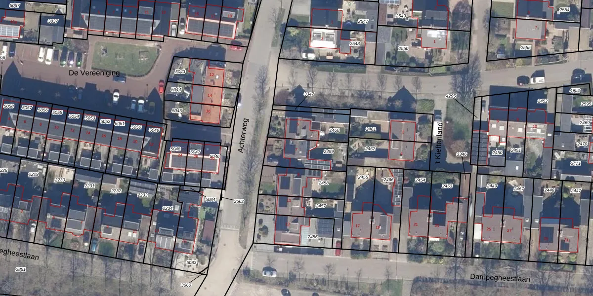 Gebruik de zoekbalk of klik op een perceel voor informatie over de adressen binnen dit perceel.