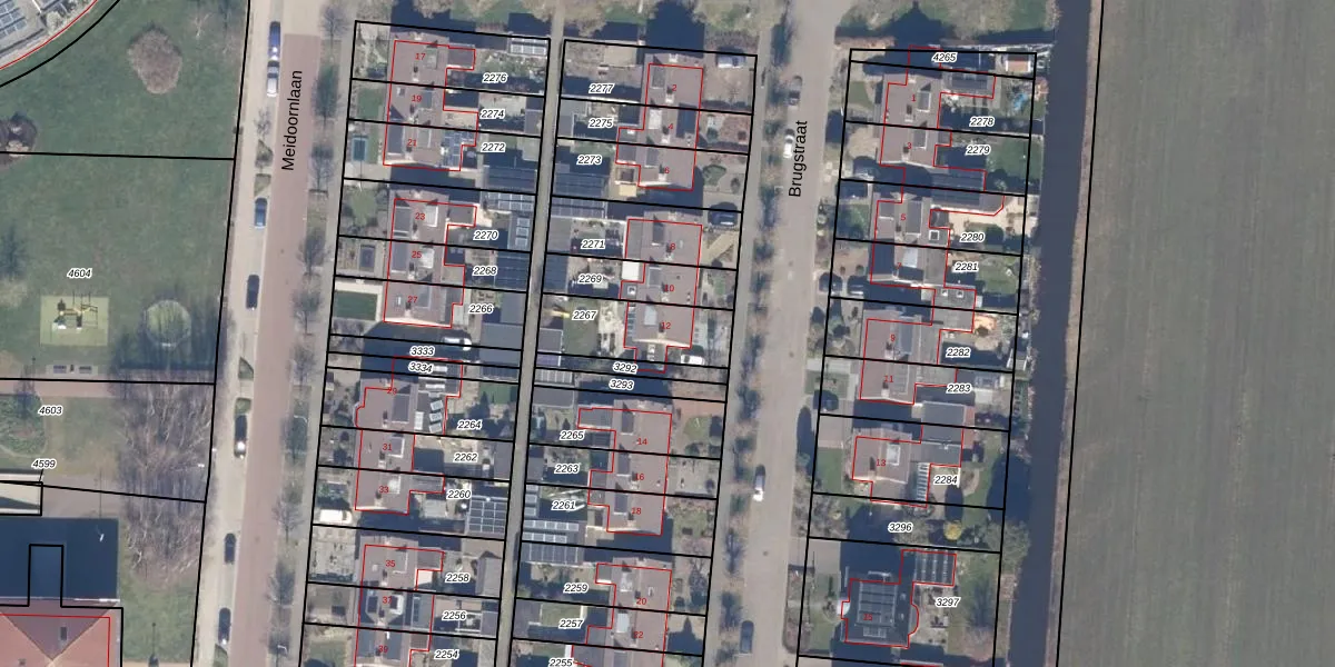 Gebruik de zoekbalk of klik op een perceel voor informatie over de adressen binnen dit perceel.