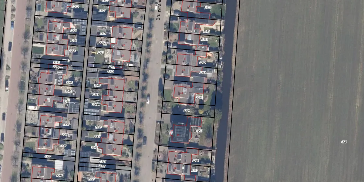 Het perceel waarop Brugstraat 13 staat heeft een oppervlakte van 339 m². Dit is een groot perceel. De perceeloppervlakte wordt geregistreerd door het Kadaster. Gedetailleerde informatie over de maten van dit perceel kunt u vinden in het rapport Kadastrale kaart met maatvoering van Brugstraat 13.
