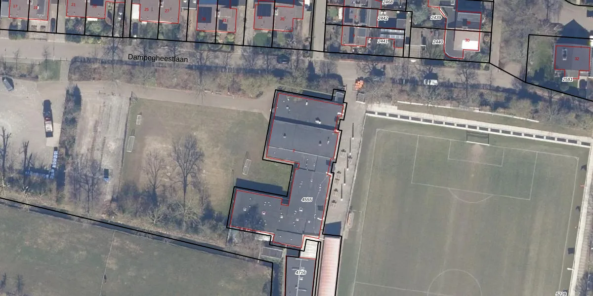 Dampegheestlaan 2 is gelegen op kadastraal perceel LMN00A4555. Deze kadastrale aanduiding is uniek en wordt gebruikt door het Kadaster om eigendomsrechten en andere zakelijke rechten vast te leggen. Het perceel maakt onderdeel uit van de kadastrale gemeente Limmen.