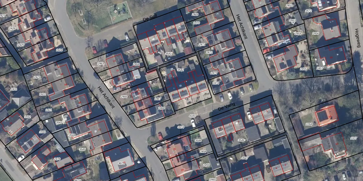 Het perceel waarop De Vang 6 staat heeft een oppervlakte van 550 m². Dit is een groot perceel. De perceeloppervlakte wordt geregistreerd door het Kadaster. Gedetailleerde informatie over de maten van dit perceel kunt u vinden in het rapport Kadastrale kaart met maatvoering van De Vang 6.