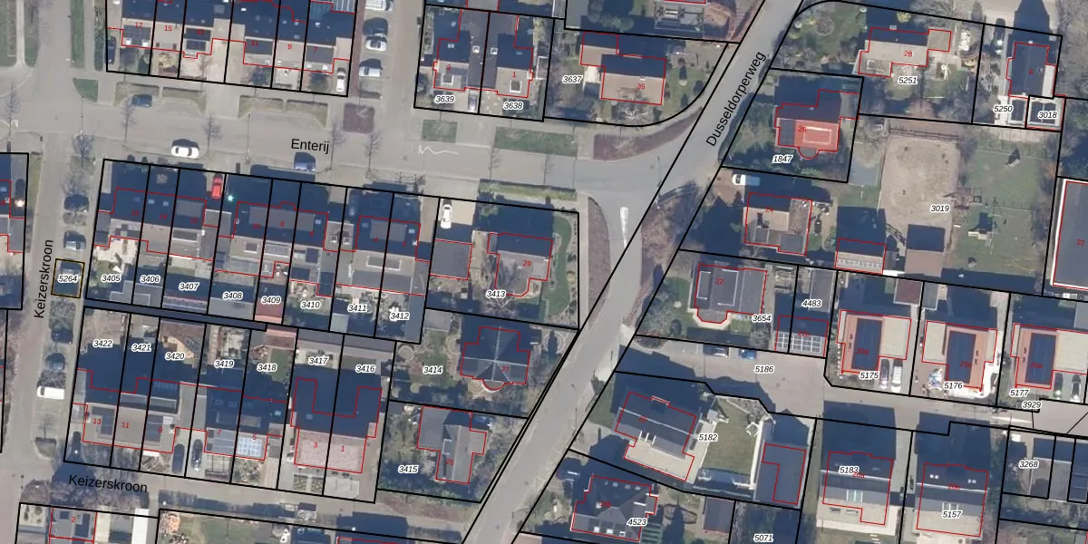 Gebruik de zoekbalk of klik op een perceel voor informatie over de adressen binnen dit perceel.