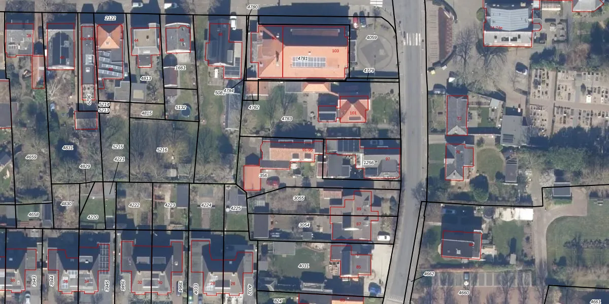 Het perceel waarop Dusseldorperweg 91 staat heeft een oppervlakte van 590 m². Dit is een groot perceel. De perceeloppervlakte wordt geregistreerd door het Kadaster. Gedetailleerde informatie over de maten van dit perceel kunt u vinden in het rapport Kadastrale kaart met maatvoering van Dusseldorperweg 91.