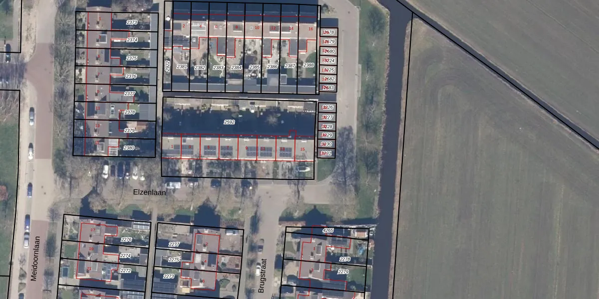 Het perceel waarop Elzenlaan 15 staat heeft een oppervlakte van 1352 m². Dit is een zeer groot perceel. De perceeloppervlakte wordt geregistreerd door het Kadaster. Gedetailleerde informatie over de maten van dit perceel kunt u vinden in het rapport Kadastrale kaart met maatvoering van Elzenlaan 15.