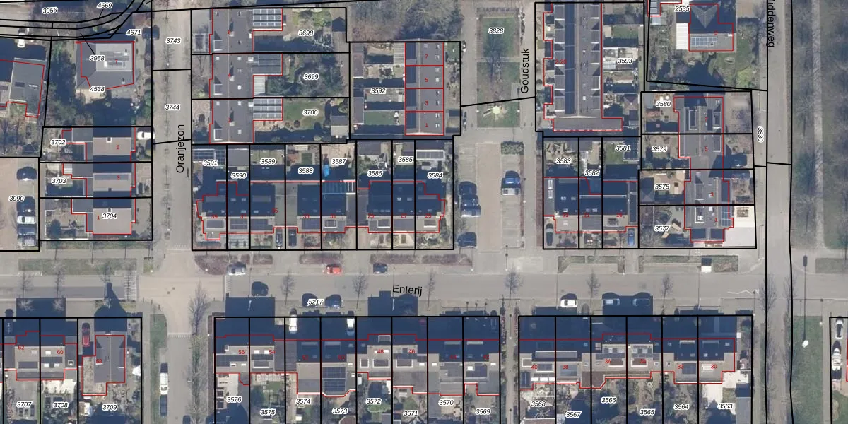 Het perceel waarop Enterij 25 staat heeft een oppervlakte van 235 m². Dit is een middelgroot perceel. De perceeloppervlakte wordt geregistreerd door het Kadaster. Gedetailleerde informatie over de maten van dit perceel kunt u vinden in het rapport Kadastrale kaart met maatvoering van Enterij 25.