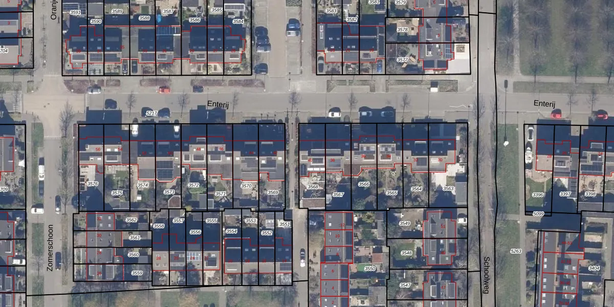 Het perceel waarop Enterij 40 staat heeft een oppervlakte van 244 m². Dit is een middelgroot perceel. De perceeloppervlakte wordt geregistreerd door het Kadaster. Gedetailleerde informatie over de maten van dit perceel kunt u vinden in het rapport Kadastrale kaart met maatvoering van Enterij 40.