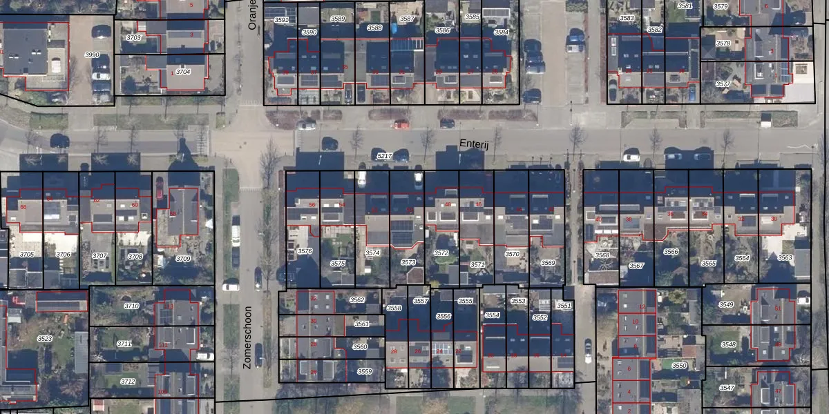 Het perceel waarop Enterij 50 staat heeft een oppervlakte van 234 m². Dit is een middelgroot perceel. De perceeloppervlakte wordt geregistreerd door het Kadaster. Gedetailleerde informatie over de maten van dit perceel kunt u vinden in het rapport Kadastrale kaart met maatvoering van Enterij 50.