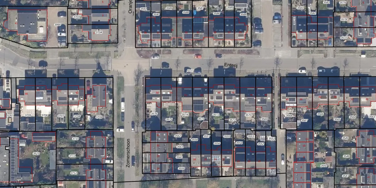 Gebruik de zoekbalk of klik op een perceel voor informatie over de adressen binnen dit perceel.