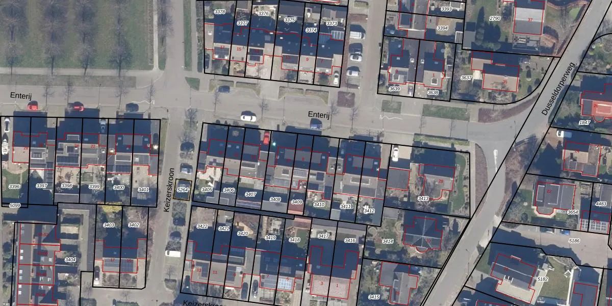 Het perceel waarop Enterij 8 staat heeft een oppervlakte van 141 m². Dit is een middelgroot perceel. De perceeloppervlakte wordt geregistreerd door het Kadaster. Gedetailleerde informatie over de maten van dit perceel kunt u vinden in het rapport Kadastrale kaart met maatvoering van Enterij 8.