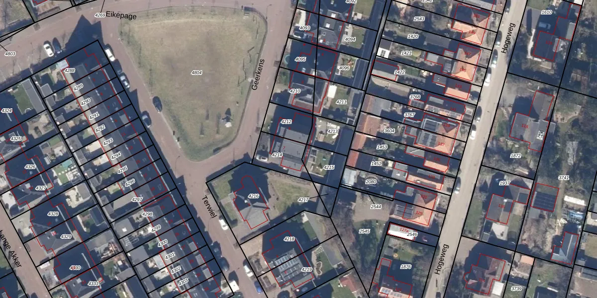 Gebruik de zoekbalk of klik op een perceel voor informatie over de adressen binnen dit perceel.