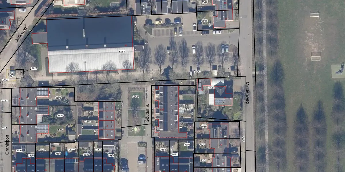 Het perceel waarop Goudstuk 18 staat heeft een oppervlakte van 805 m². Dit is een groot perceel. De perceeloppervlakte wordt geregistreerd door het Kadaster. Gedetailleerde informatie over de maten van dit perceel kunt u vinden in het rapport Kadastrale kaart met maatvoering van Goudstuk 18.