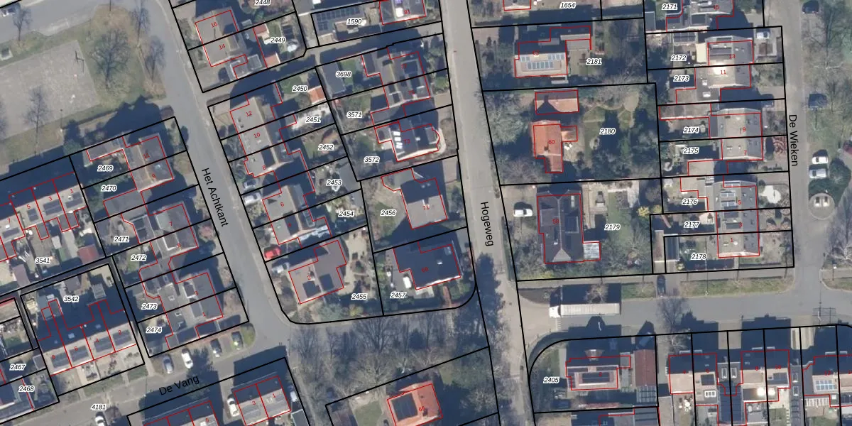Gebruik de zoekbalk of klik op een perceel voor informatie over de adressen binnen dit perceel.