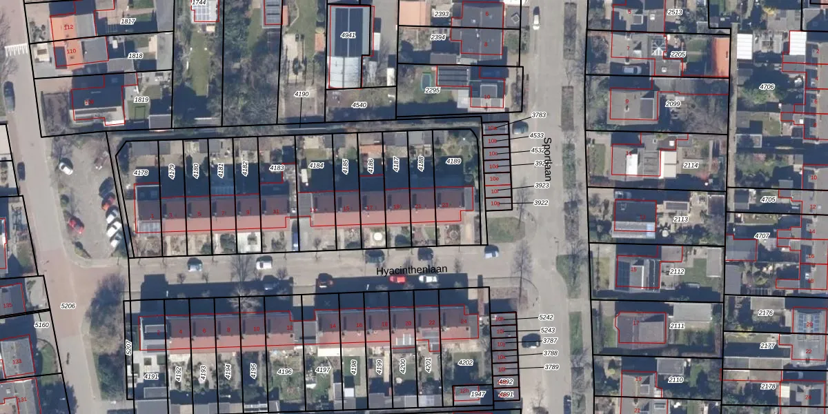 Het perceel waarop Hyacinthenlaan 21 staat heeft een oppervlakte van 169 m². Dit is een middelgroot perceel. De perceeloppervlakte wordt geregistreerd door het Kadaster. Gedetailleerde informatie over de maten van dit perceel kunt u vinden in het rapport Kadastrale kaart met maatvoering van Hyacinthenlaan 21.