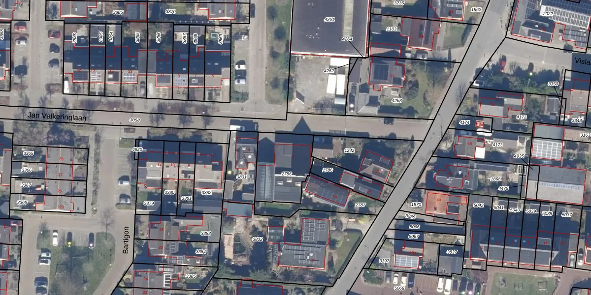 Het perceel waarop Jan Valkeringlaan 2 staat heeft een oppervlakte van 415 m². Dit is een groot perceel. De perceeloppervlakte wordt geregistreerd door het Kadaster. Gedetailleerde informatie over de maten van dit perceel kunt u vinden in het rapport Kadastrale kaart met maatvoering van Jan Valkeringlaan 2.