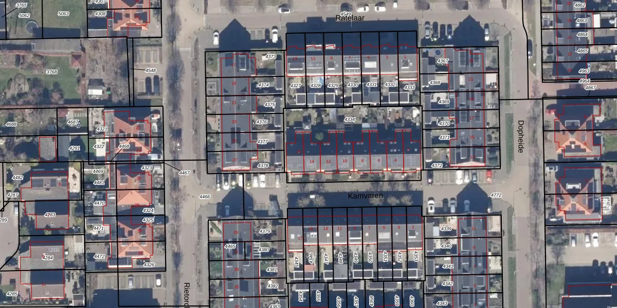 Het perceel waarop Kamvaren 14 staat heeft een oppervlakte van 1090 m². Dit is een zeer groot perceel. De perceeloppervlakte wordt geregistreerd door het Kadaster. Gedetailleerde informatie over de maten van dit perceel kunt u vinden in het rapport Kadastrale kaart met maatvoering van Kamvaren 14.