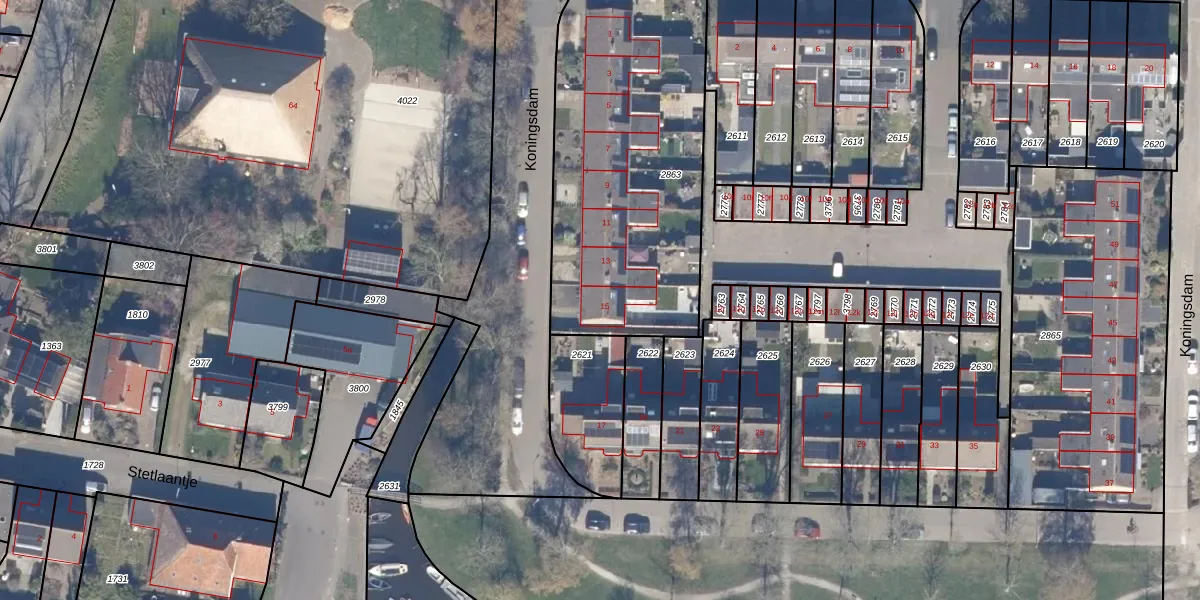 Het perceel waarop Koningsdam 15 staat heeft een oppervlakte van 1429 m². Dit is een zeer groot perceel. De perceeloppervlakte wordt geregistreerd door het Kadaster. Gedetailleerde informatie over de maten van dit perceel kunt u vinden in het rapport Kadastrale kaart met maatvoering van Koningsdam 15.
