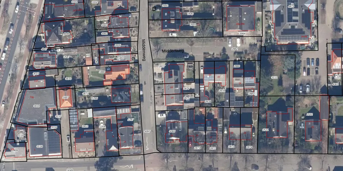 Het perceel waarop Middenweg 16 staat heeft een oppervlakte van 206 m². Dit is een middelgroot perceel. De perceeloppervlakte wordt geregistreerd door het Kadaster. Gedetailleerde informatie over de maten van dit perceel kunt u vinden in het rapport Kadastrale kaart met maatvoering van Middenweg 16.