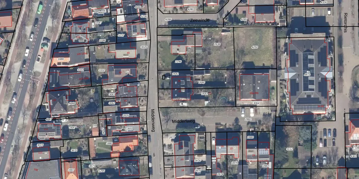 Het perceel waarop Middenweg 28 staat heeft een oppervlakte van 452 m². Dit is een groot perceel. De perceeloppervlakte wordt geregistreerd door het Kadaster. Gedetailleerde informatie over de maten van dit perceel kunt u vinden in het rapport Kadastrale kaart met maatvoering van Middenweg 28.