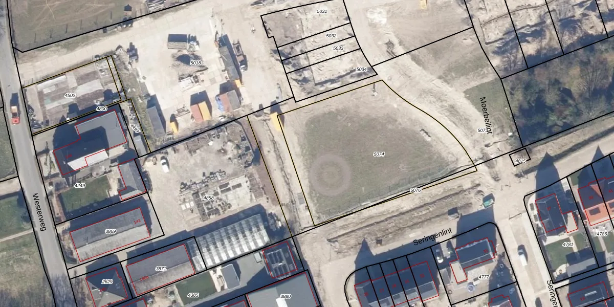 Moerbeilint 25 is gelegen op kadastraal perceel LMN00C5074. Deze kadastrale aanduiding is uniek en wordt gebruikt door het Kadaster om eigendomsrechten en andere zakelijke rechten vast te leggen. Het perceel maakt onderdeel uit van de kadastrale gemeente Limmen.