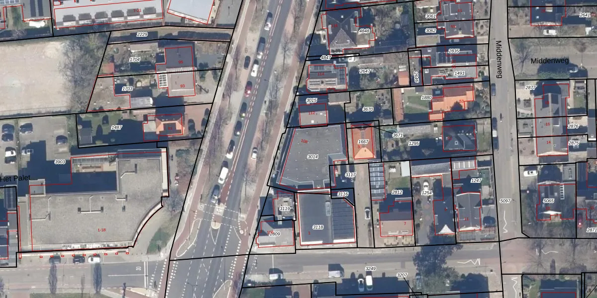 Gebruik de zoekbalk of klik op een perceel voor informatie over de adressen binnen dit perceel.